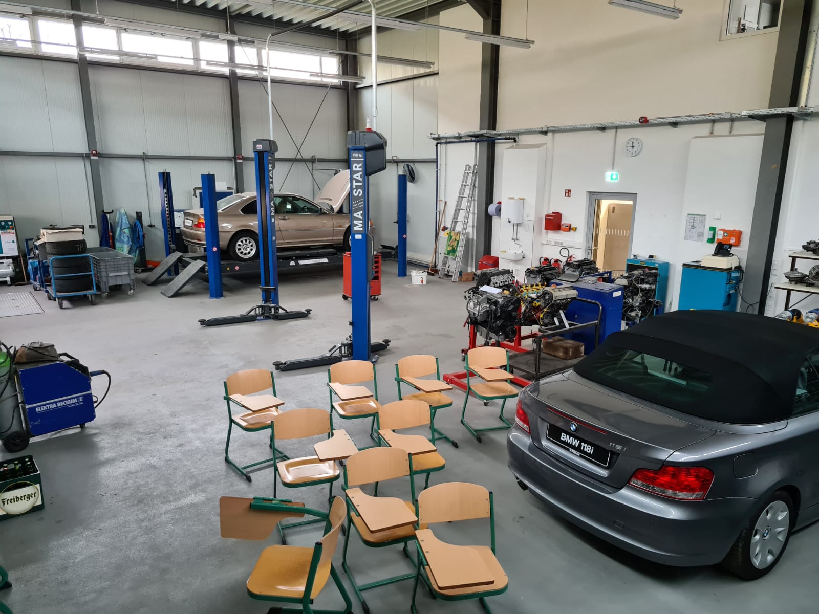 Ein neues Lehrgebäude für die Kfz-Ausbildung wurde errichtet. Nach mehreren Jahren Bauzeit ist es gelungen, das Bauvorhaben abzuschließen. Die Gebäudeübergabe erfolgte offiziell am 7. Dezember 2021. Neben fünf neuen Unterrichtsräumen für die Kfz-Ausbildung entstanden eine ca. 200 m² große Kfz-Werkstatt, die mit Hebebühnen, Bremsprüfstand, Reifenmontagemöglichkeiten und diverseren Prüf- und Diagnoseplätzen ausgerüstet ist. Ferner werden die Werk- und Montagebänke für den fachpraktischen Unterricht der Berufsfachschule genutzt. Ein herzlicher Dank gilt dem Hochbauamt, dem Amt für Gebäudewirtschaft und dem Amt für Bildung der Stadt Erfurt für die Planung und die Überwachung des Bauprojekts sowie für die Bereitstellung der technischen Basis. Unser Dank richtet sich besonders auch an die verschiedenen Baufirmen, die eine gute handwerkliche Arbeit leisteten. Der im November abgeschlossene Umzug und der finale Einzug gelang vor allem durch die tatkräftige Unterstützung unserer Lehrer. Hierfür ein großer Dank an alle beteiligten Pädagogen. Wir wünschen allen Nutzern Freude beim Lernen im neuen Gebäudeteil