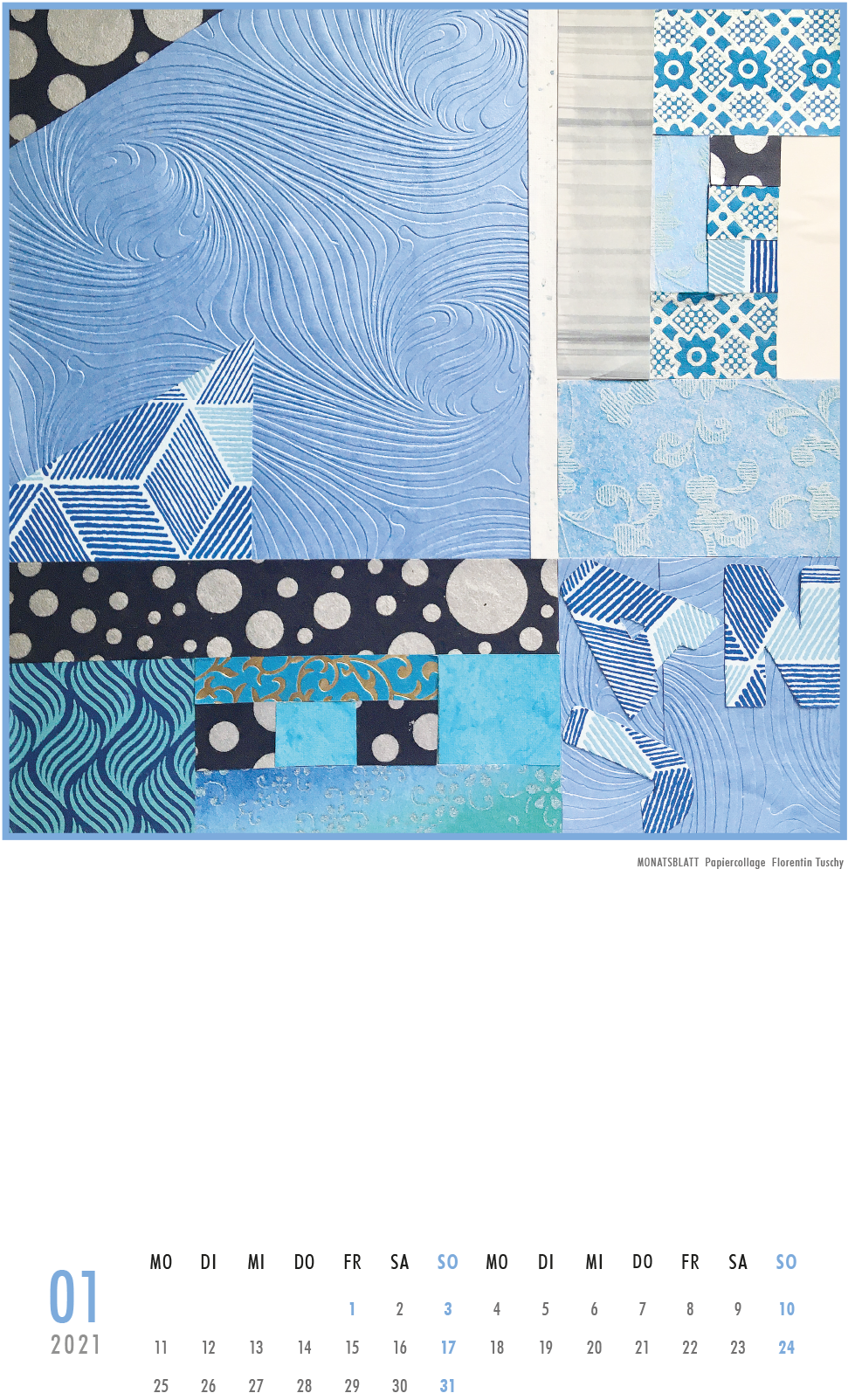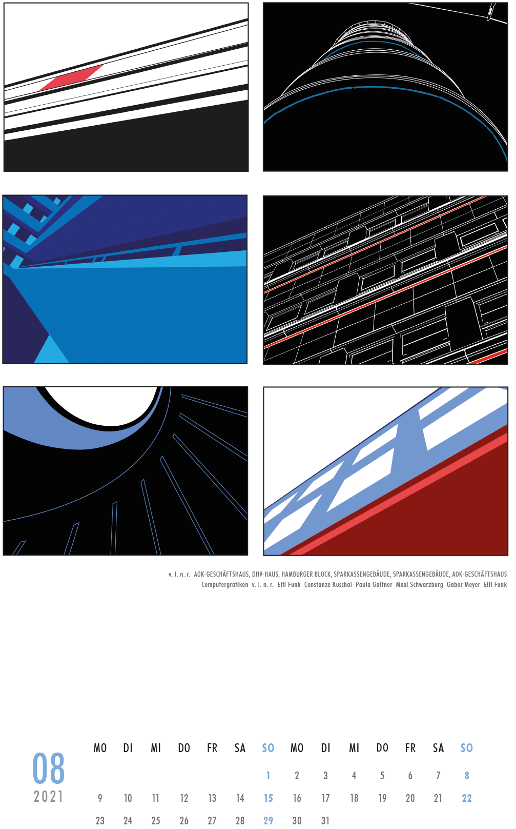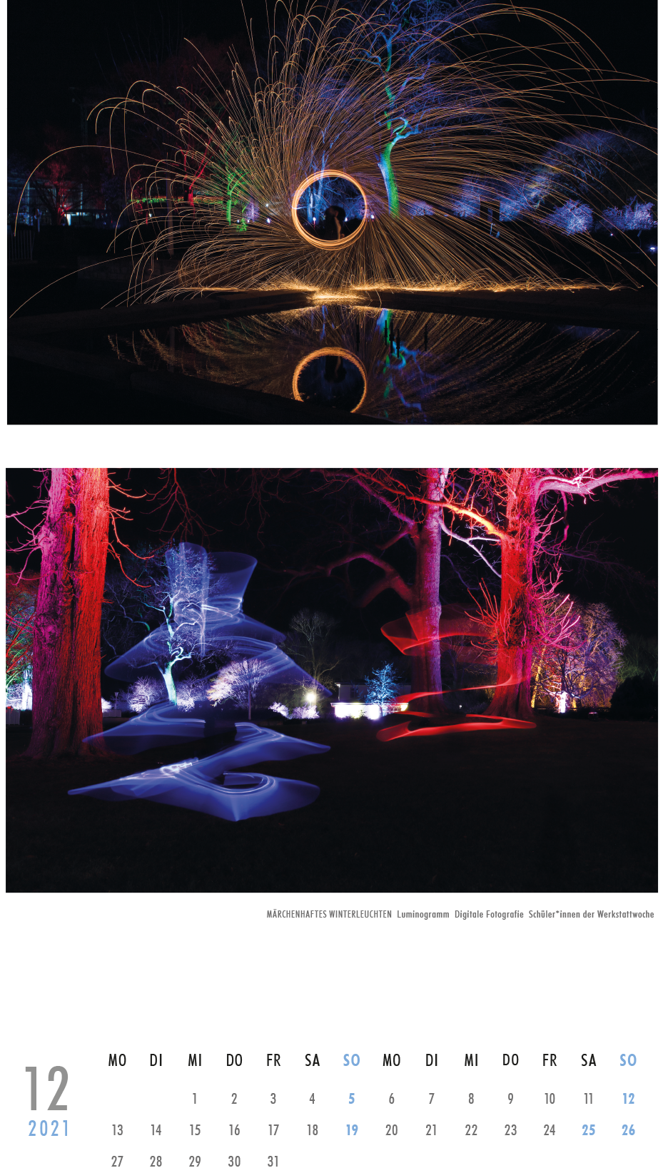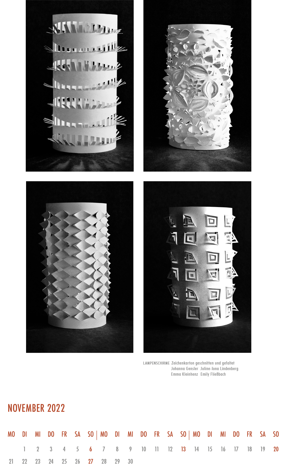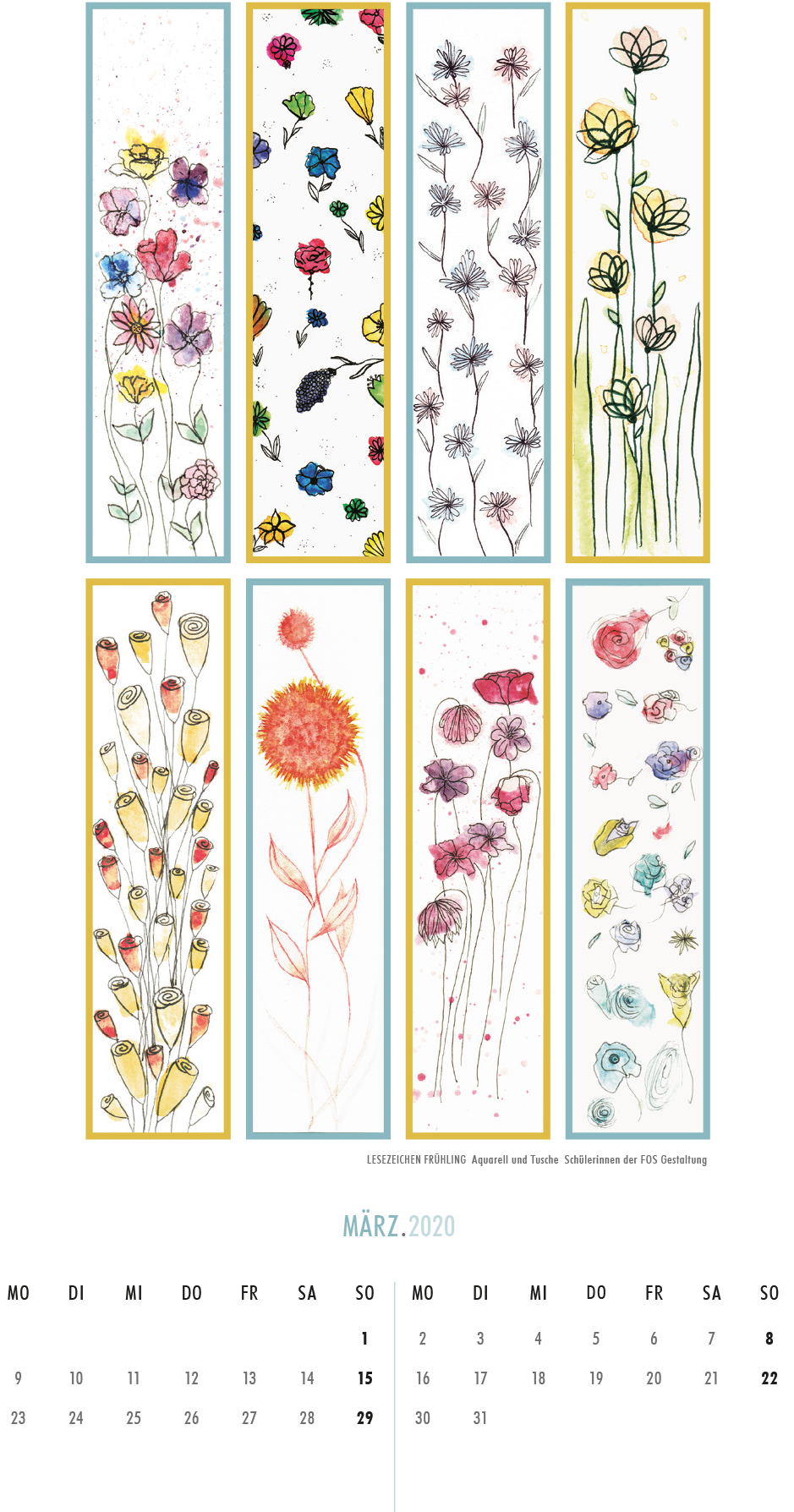 Jedes Jahr wird von unserer Schule ein Kalender veröffentlicht. Dieser enthält von im gestalterischen Bereich tätigen Lehrerinnen und Lehrern „handverlesene“ Arbeiten unserer Lernenden aus der gestalterischen Ausbildung.